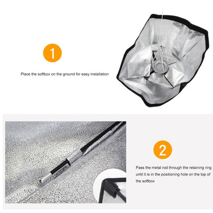 6. The size of the softbox is 60 x 60cm, which can be easily folded like an umbrella, it can be assembled quickly and can be easily set