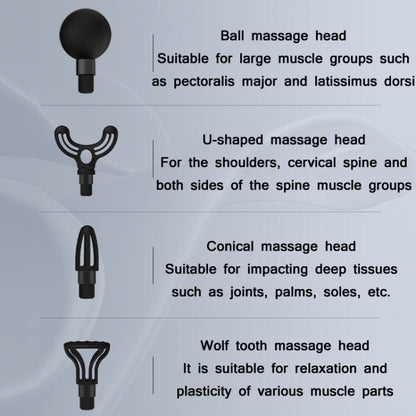 14. Conical massage head: suitable for impacting deep tissues such as joints, palms and soles, etc.